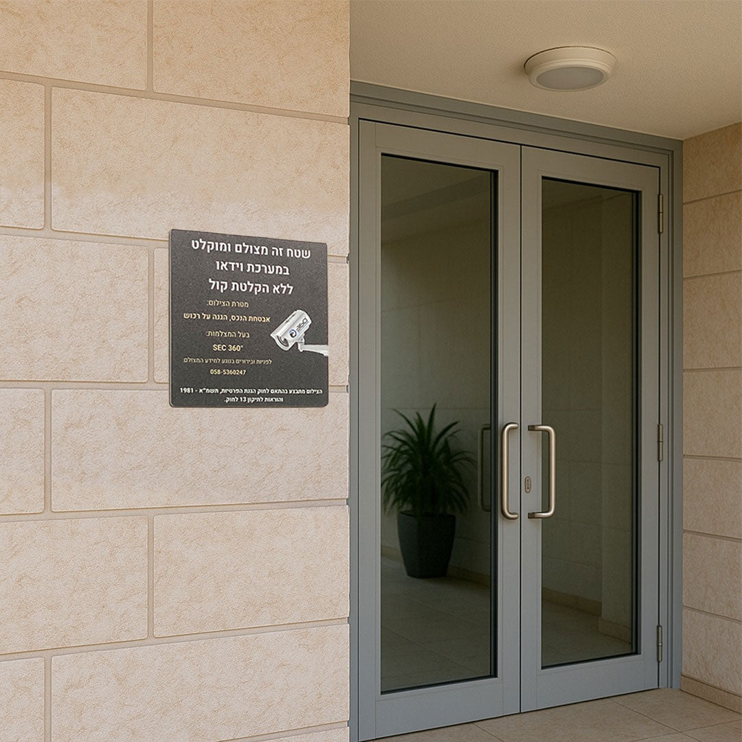 שלטים תקניים למצלמות אבטחה ע״פ תיקון 13 - מותאמים אישית לעסק שלך